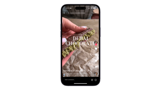 We can’t finish the trends list without mentioning the viral Dubai chocolate trend. This luxurious pistachio and kunafa-filled chocolate bar became an instant sensation, with TikTokers eager to try it for themselves. For those who couldn’t get their hands on the original, recreating it at home became the next best thing, resulting in hundreds of recipe videos popping up all over TikTok.